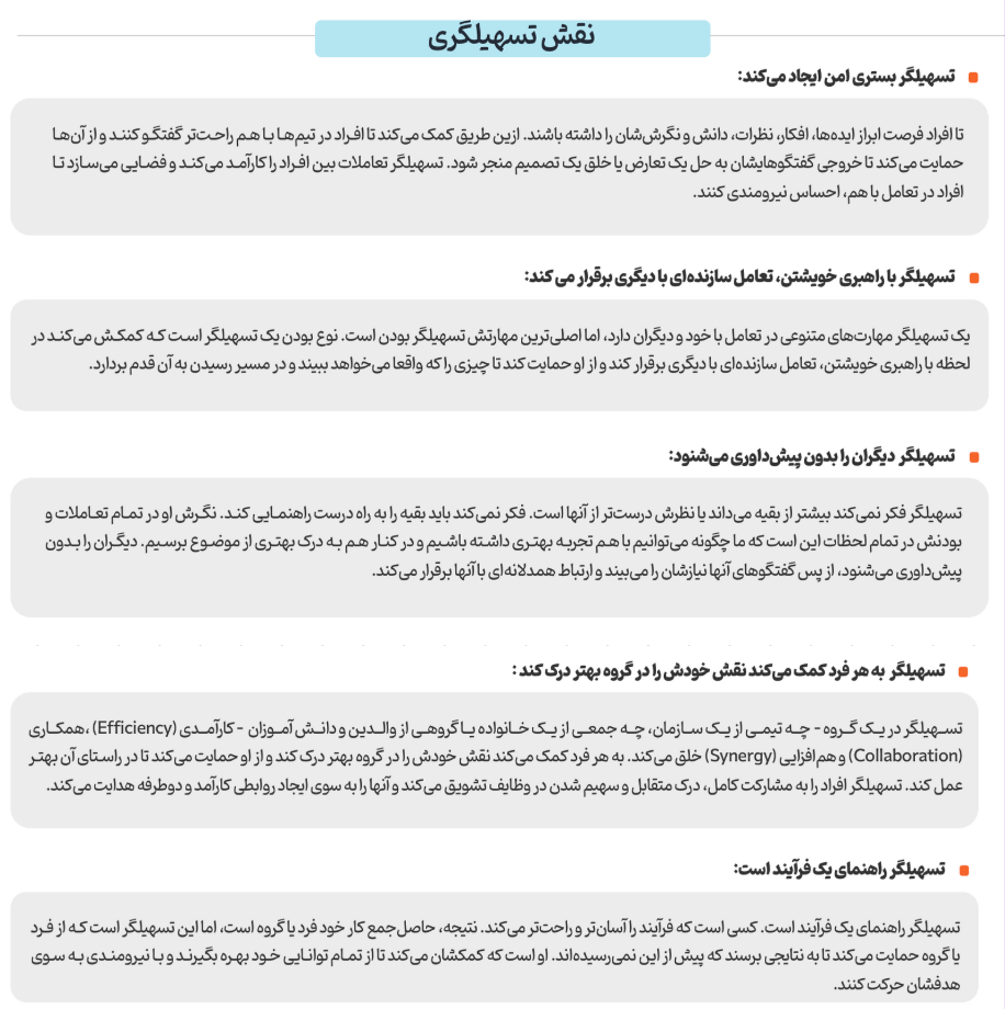 مهارتهای تسهیلگری، تواناییهایی هستند که شما برای فراهم کردن فرصتها و منابع برای گروهی از افراد استفاده میکنید که آنها را قادر به پیشرفت و موفقیت میکند. برخی از این مهارت ها عبارتند از باز…