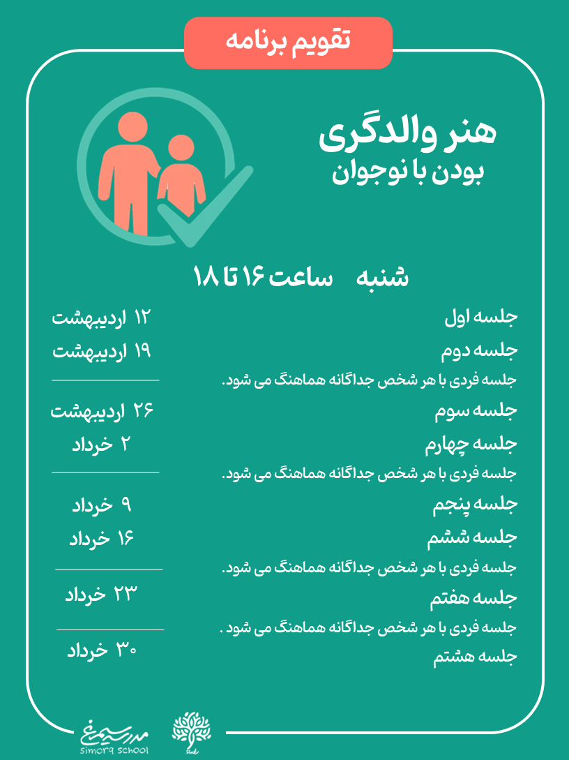 دوره «هنر والدگری؛ بودن با نوجوان» بر اساس برنامه Bringing Up Great Adolescents (BUGA) بنیاد ACF استرالیا طراحی شده است. این دوره در ۸ هفته، شامل ۸ جلسه گروهی دو ساعته است و والدین را در درک دنیای نوجوان، نیازهای روانی–عاطفی او و ایجاد تعادل میان آزادی و مسئولیت راهنمایی میکند.